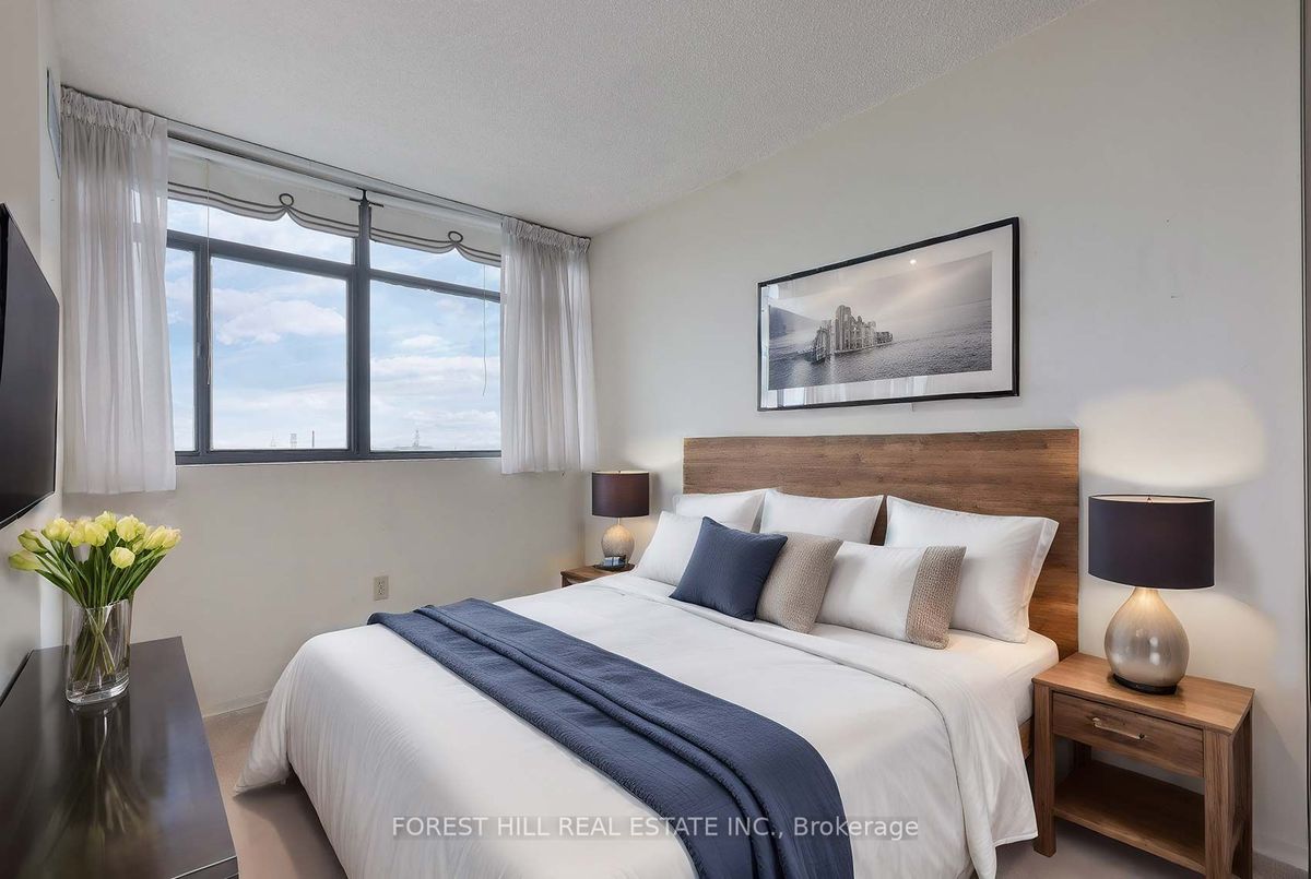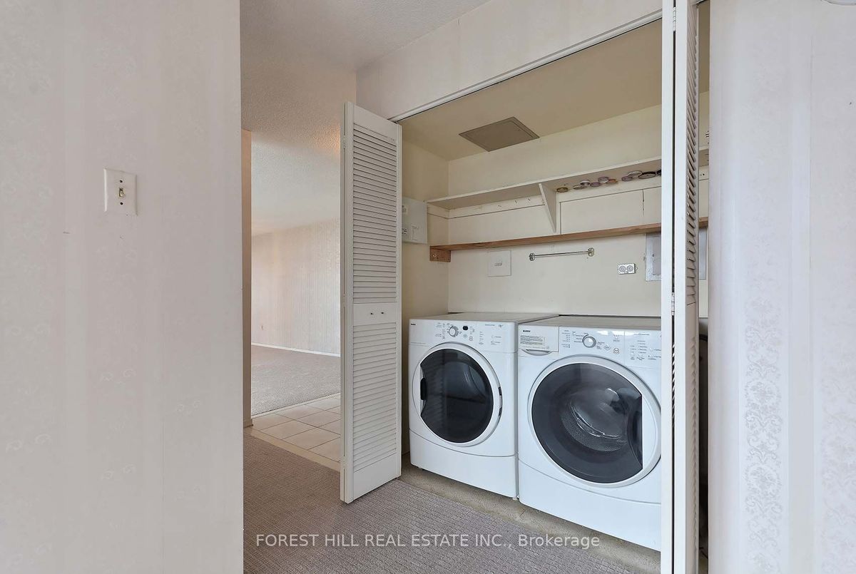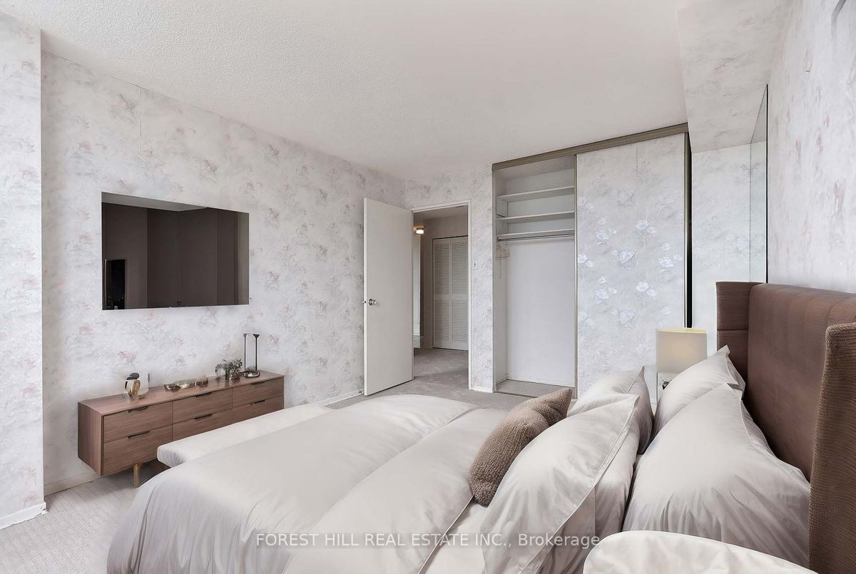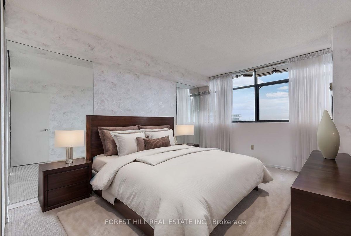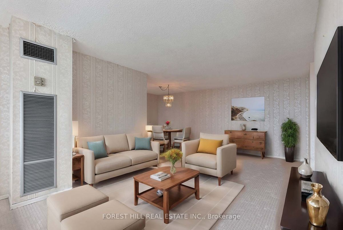 Opportunity awaits in this 2 Bed 2 Bath Condo just steps from TTC. Beautiful south and west views. New Carpet Throughout. Eat in Galley Kitchen with White Appliances. Large Solarium that can be used for additional living space. Bright and Spacious. Large Primary bedroom that boasts a double closet. 2nd Bedroom large enough for a queen or two single beds. Building is surrounded by luscious green space. Maintenance fees include all utilizes including cable TV. This is an affordable option for buyers trying to enter the market. Lots of space. Similar units in the building have one bathroom. This unit features two.