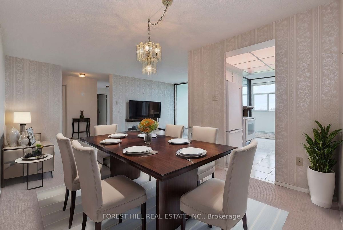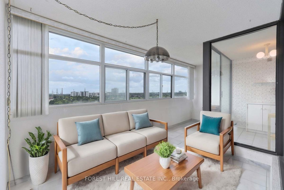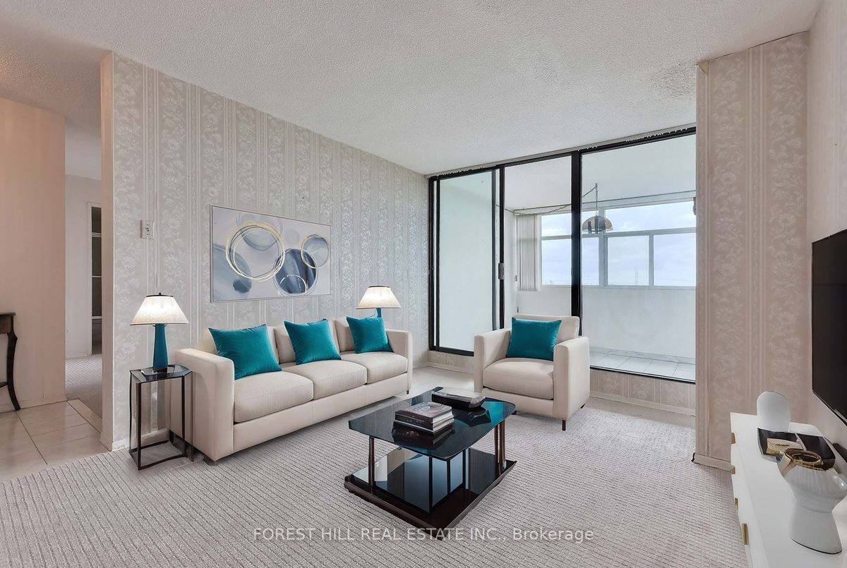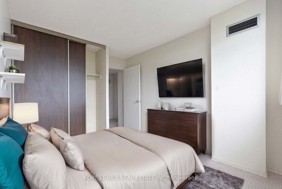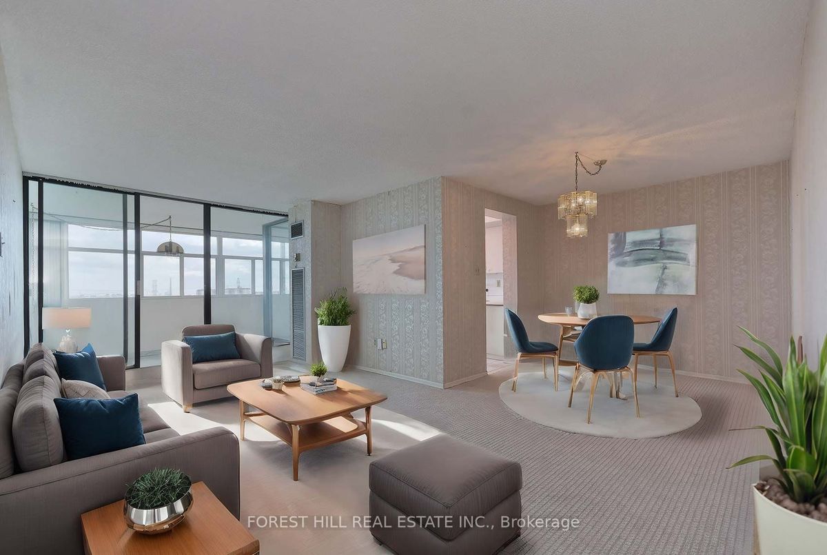 Opportunity awaits in this 2 Bed 2 Bath Condo just steps from TTC. Beautiful south and west views. New Carpet Throughout. Eat in Galley Kitchen with White Appliances. Large Solarium that can be used for additional living space. Bright and Spacious. Large Primary bedroom that boasts a double closet. 2nd Bedroom large enough for a queen or two single beds. Building is surrounded by luscious green space. Maintenance fees include all utilizes including cable TV. This is an affordable option for buyers trying to enter the market. Lots of space. Similar units in the building have one bathroom. This unit features two.